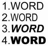 (A)為 Arial 字體家族 (B)第二個字為 Narrow style (C)第三個字為 Italic style (D)第四個字為 Blackstyle 。
