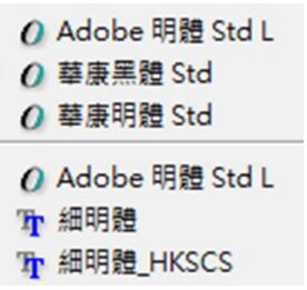 (A)OpenType (B)Type1 (C)TrueType (D)點陣字體 。