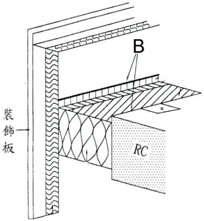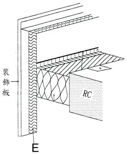 (A)防火隔熱岩棉(B)層間塞 (C)混凝土樓版 (D)鋁箔膠帶 。