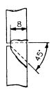 (A)箭頭邊之銲接深度為 8mm (B)箭頭邊之根隙為 4mm (C)起槽角度為 60° (D)為 V 形槽銲接 。