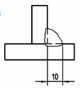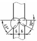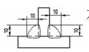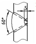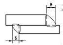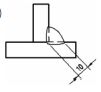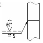 (A)單斜形槽銲接,兩邊銲道槽角相等 (B)斜 Y 形槽銲接,兩邊銲道深度相等 (C)兩邊填角銲接,銲道腳長 6mm (D)兩邊全周銲接 。