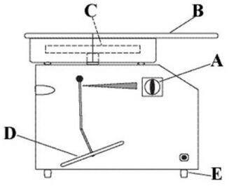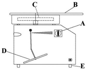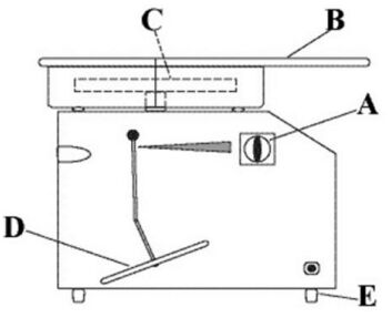 (A)工作台面 (B)集泥盤 (C)轉盤 (D)機台台面 。