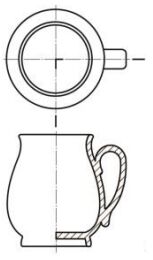 (A)是小花瓶的前視圖(B)是小花瓶的側視圖 (C)只要一個視圖便可說明小花瓶大小 (D)小花瓶是扁瓶 。