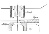 61. 下圖所示 NC 沖床沖剪低碳鋼時,母材被夾持的正確性,下列何者正確? (A)