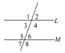 (A)∠3=∠6 (B)∠1=∠8 (C)∠1+∠8=180° (D)∠2+∠5=180° 。