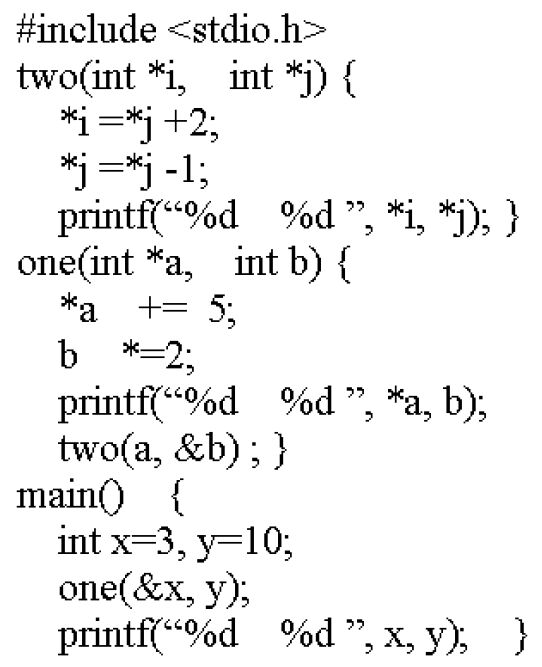 37. 在執行完下列 C 程式後,其輸出結果何者正確?