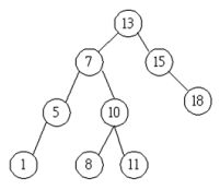 (A)異動後之 AVL Tree 其葉節點共 5 個 (B)異動後之 AVL Tree 其分支度為 1 之節點共 3 個 (C)異動後之 AVL Tree 其分支度為 2 之節點共 4 個 (D)異動後之 AVL Tree 其 Preorder 為 13, 7, 5,1,8,10,11,12,15,18 。