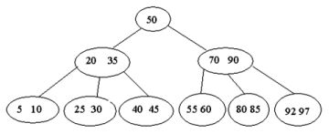 (A)該 B-tree 之分支度(Order)不可能為3 (B)該 B-tree 之分支度(Order)不可能為 5 (C)該 B-tree 之分支度(Order)可能為 2 或 3 或 4 (D)該 B-tree 之分支度(Order)可能為 3 或 4 或 5 。
