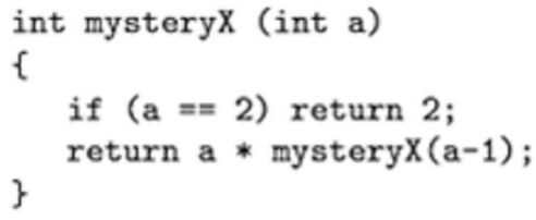 (A)mysteryX(0)之結果為 0 (B)mysteryX(3)之結果為 8 (C)mysteryX(5)之結果為 240 (D)mysteryX(7)之結果為 5040 。