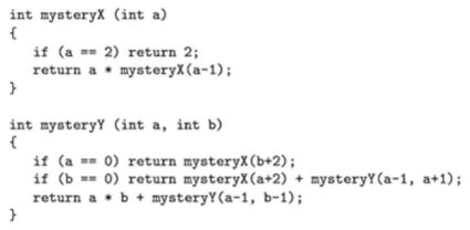 (A)mysteryY(0,0)之結果為 0 (B)mysteryY(0,0)之結果為 2 (C)mysteryY(0,0)之結果為 4 (D)mysteryY(0,0)之結果為 8 。