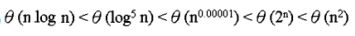 ,演算法的時間複雜度(Time Complexity)由小到大的排序,下列何者是正確的? (A)