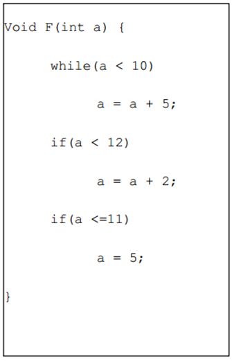 給定右側函式 F( ),執行F( )時哪一 行程式碼永遠不會被執行到? (A) a = a + 5 (B) a = a + 2 (C) a = 5 (D)每一行都執行得到