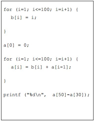 給定右側程式片段,當程式執 行完後,輸出結果為何? (A) 9 (B) 18 (C) 27 (D) 30