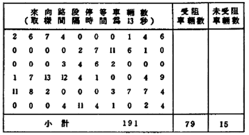 【已刪除】一、㈠某一路口來向路段共收集60筆停等資料及其受阻與未受阻車輛數資枓,整理如下表。試估 算該路口來向路段之停等延滞。(15分)