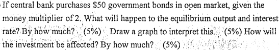 (3) Solve the equilibrium level of output and interest rate, (5%)