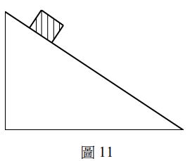 36. 如圖 11 所示,一物體沿平滑斜面滑下,在下滑 的過程中,下列有關該物體的加速度量值 a 和速 度量值 v 的變化,何者正確? (A)a 和 v 都不變 (B)a 和 v 都漸變大 (C)a 和 v 都漸變小 (D)a 不變,v 漸變大 (E)a 漸變小,v 漸變大