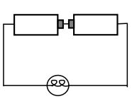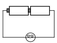 77. 地震後停電,小馬利用兩個 1.5V 的乾電池及標示 3V、5W 的小燈泡自製簡易手電 筒,下列的電路何者正確?(應選二項) (A) (B) (C) (D) (E)