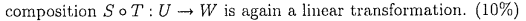 【已刪除】3. Let T : U→ V and S : V →W be linear transformations. Prove that the