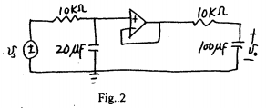 【已刪除】2. In the op amp circuit of Fig. 2, vs = 4u(t) V, find the zero-state response vu(t) for t ≥ 0. 20%