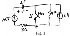 【已刪除】3. The circuit of Fig. 3 has reached steady state when the switch S is open. The switch S is closed at t = 0. Find and plot v(t), 0. 20%