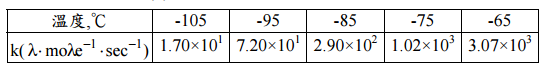 OH 所得反應速率常數(k)隨溫度變化之數據如下:
