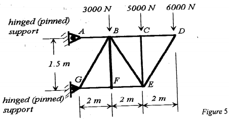 【已刪除】5, Find the forces in the members BFt and CE of the truss shown in Figure 5. (15%)
