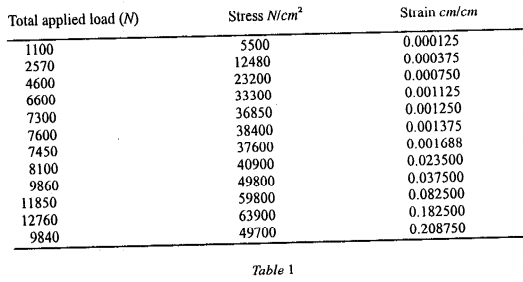 【已刪除】1. The following values of stress and strain are extracted from a test data recorded daring a tension test in a mild steel specimen as shown in Table 1. The initial diameter of the material was 0.502 cm and the gage length was 8 cm.