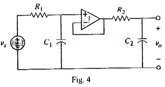 = 10u(t) V in the op amp circuit of Fig. 4 assuming zero initial condition, find v