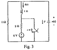 【已刪除】3. The switch in Fig. 3 has been open for a long time and is closed at t = 0. Find i(t) and v(t) for t > 0. (25%)