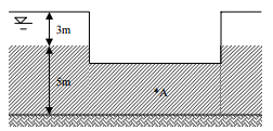 【已刪除】二、有一厚 3m 之砂土層,其下方為厚 5m 之正常壓密粘土層,地下水面位於地表下 1m 處 。今如在該地層開挖至地表下 4m 後進行建築結構,該構造物施加之荷重為 60 kN/m