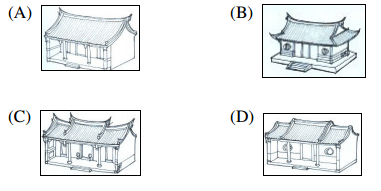 29.下列那一張圖片,為傳統建築中的三川式屋頂?