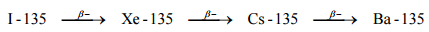 【已刪除】四、請依照以下提供之核種衰變過程,寫出 Xe-135 於核反應器穩定運轉及停機後之平 衡微分方程式。(10 分)請簡略的定性畫出 Xe-135 於停機後的暫態行為,並說明 Xe-135 的存在對核電廠安全運轉的影響。(10 分)