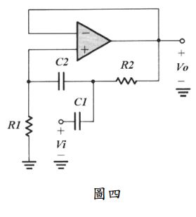 【已刪除】六、二階濾波電路如圖四所示,請推導出其極點頻率(pole frequency)與極點品質因子 (pole quality factor)。(20 分)