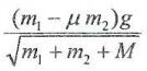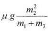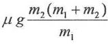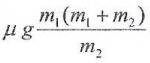 15.木塊m1放在一光滑無摩擦力水平面上,木塊m2又放在木板m1之上。m1與m2間有靜摩擦係數μ。以一水平力F拉m2。當m1與m2能一起用相同速度運動時,F的最大值為 (A) (B) (C) (D) (E)