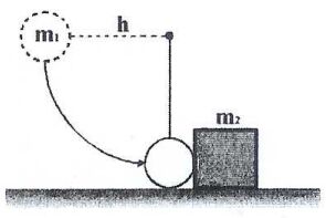 17.質量0.50公斤的球,綁在h=70公分的繩子的一端,另一端固定(見右圖),當球靜止自繩子水平位置放下,在最低點時撞擊(彈性碰撞)質量2.5公斤的方形靜止木塊。方形木塊置於摩擦係數為0.5的表面上,撞擊後方形木塊向右移動經過一段距離停止,則此距離為
