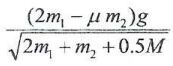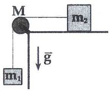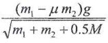 18.在圖中m1>m2,繩子重量不計;繩子與滑輪M沒有滑動,在需考慮滑輪的轉動(ICM=MR²/2)下,m1自靜止釋放。如m2與水平面有摩擦係數μ,則m1的加速度為
