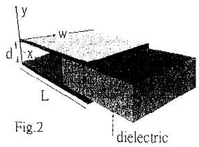 【已刪除】2. Consider the case of a slab of linear dielectric material, partially inserted between the plates of a parallel plate capacitor (Fig.2). Assume the total charge on the plates Q is held constant, as the dielectric moves. Find the force acting on the dielectric by the plates.