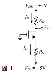 為氧化層電容。通道長度 為 L = 10 µm,寬度為 w = 400 µm,若忽略通道長度調變效應(Channel length modulation),試求出 V