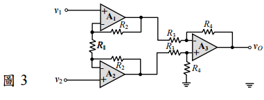 【已刪除】三、圖 3 為常用的儀表放大器電路,若 v