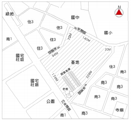 【已刪除】二、 設計題: 主題:都市發展是一連串動態的成長過程,且存在著眾多新舊衝突的都市景觀風 貌,為能提供更適居的生活空間,政府通常透過政策、法令及審議機制來改進及 管理空間機能。 請以都市設計的觀點,分析下列問題: 地區現況說明 圖一之區域範圍係都市計畫區內之住商混合區,兩條河流分別從該區域之上方 及左側經過,右側為山坡地形。粗點線 所圍繞範圍乃地方政府已規劃 擬辦理之都市更新地區,該更新地區外圍皆為都市新興發展區域。 設計條件與內容 圖二基地位置(斜線部分)係位於都市更新地區內已廢棄工廠之閒置空間,境 內保存 2 棟 2 層樓之斜屋頂式的工廠倉庫(長×寬為 60 公尺×15 公尺,屋齡 約 60 年之磚造建築)及 3 棵老樹,未來此基地將規劃開發複合式購物中心。 請整體考量圖一的都市元素、土地使用分區現況及下列條件說明後,就設計圖 說要求作答: 條件說明 基地內新建之商業大樓可供辦公、餐飲販賣、商場百貨並提供遊客停車 (空間需求自訂) 基地建蔽率 65 %、容積率 560 % 基地面臨 25 公尺計畫道路,8 公尺及 6 公尺的生活巷道 戶外開放空間之設置需能彈性提供經營者舉辦活絡商機之活動及社區居 民公益活動 設計圖說要求(60 分) 都市設計原則與構想(包括公共開放空間系統、人行步道與車道系統、 建築量體配置、高度、造型、環境保護、景觀計畫) 基地內建築量體配置圖(比例自訂) 兩向剖立面圖(比例自訂) 附圖 圖一:基地地理區位及土地使用分區示意圖 圖二:基地現況圖