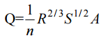 n 為曼寧糙率係數,Q 為流量,S 為坡度, A 為通水面積,R 為水力半徑