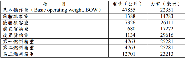 【已刪除】三、設有一客機,其裝載項目(item)、重量及力臂(arm)如下表: