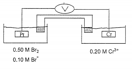 Which of the following statements about this cell is false? (A) This is a galvanic cell. (B) Electrons flow from the Pt electrode to the Cr electrode. (C) Reduction occurs at the Pt electrode. (D) The cell is not at standard conditions. (E) To complete the circuit, cations migrate into the left half-cell and anions migrate into the right half-cell from the salt bridge. II. Choose one correct answer for the following questions