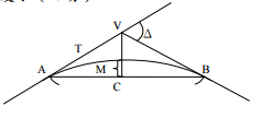 【已刪除】三、如圖,某單曲線 AB,其兩切線交角 ∆=15°30'30",切線長 T=81.70m,試計算其 長弦 C 及中距 M 之長度?(20 分)