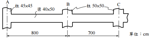【已刪除】二、假設圖示之鋼筋混凝土構架之梁的兩端及中央處之撓曲鋼筋需求量已經分別求得, 撓曲鋼筋不在張力區被切斷,試繪圖列式說明如何配置 AB 及 BC 兩跨之撓曲鋼筋 ,請同時說明如何檢核規範對鋼筋錨定之規定及標示鋼筋切斷點之位置。梁之撓曲 鋼筋採用 D22 鋼筋(d