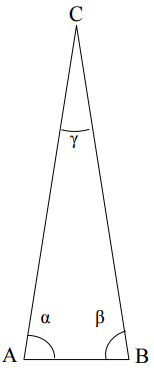 【已刪除】三、如下圖,已知 A、B 之坐標且假設誤差小至不計,C 為未知點。等權觀測 α、β、γ ,且假設三者獨立不相關。 請證明:γ →0°或 γ →180°,所計算之 AC 邊長誤差趨大。(20 分)