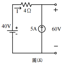 【已刪除】四、有一電路如圖⑸所示,請求出在電壓源(40V)中,其是屬消耗或供應功率,(10 分) 多少瓦特?(10 分)