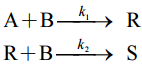 速率決定步 其中 S 代表觸媒表面的空活性位(site),A⋅S、B⋅S 及 H⋅S 則分別代表吸附於活性位的 A、B 及 H,試以上述反應機構推導此反應之 Langmuir-Hinshelwood 速率式。(20 分)