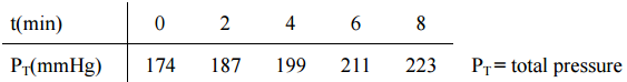 【已刪除】四、裂解反應,A(g)→2B(g)+C(g),於定容批式反應器中進行,初時反應器中僅有 A 存 在,假設反應為一級(first order),試以下列在不同時間下量測的反應總壓,決定 此反應的反應速率常數。(20 分)