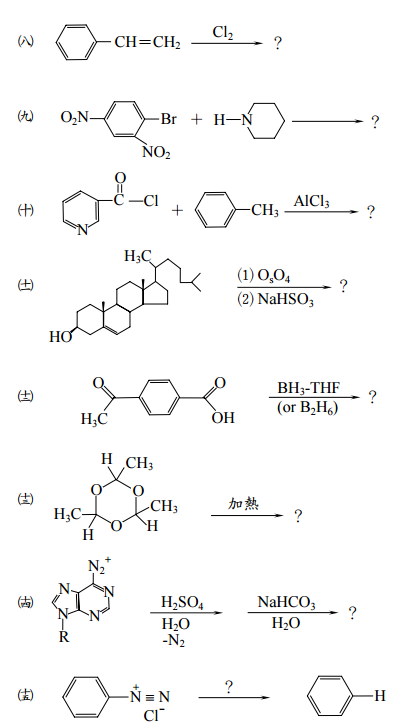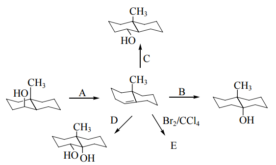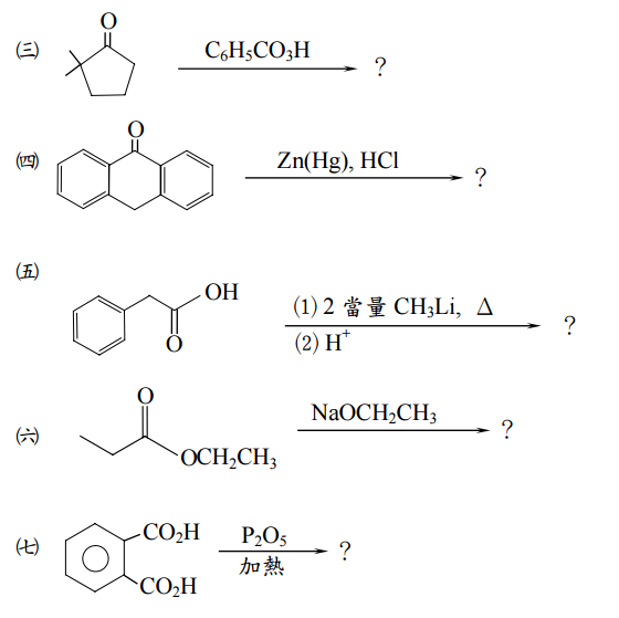 【已刪除】五、試寫出產物 A、B、C、D、E 之結構。 (10 分)
